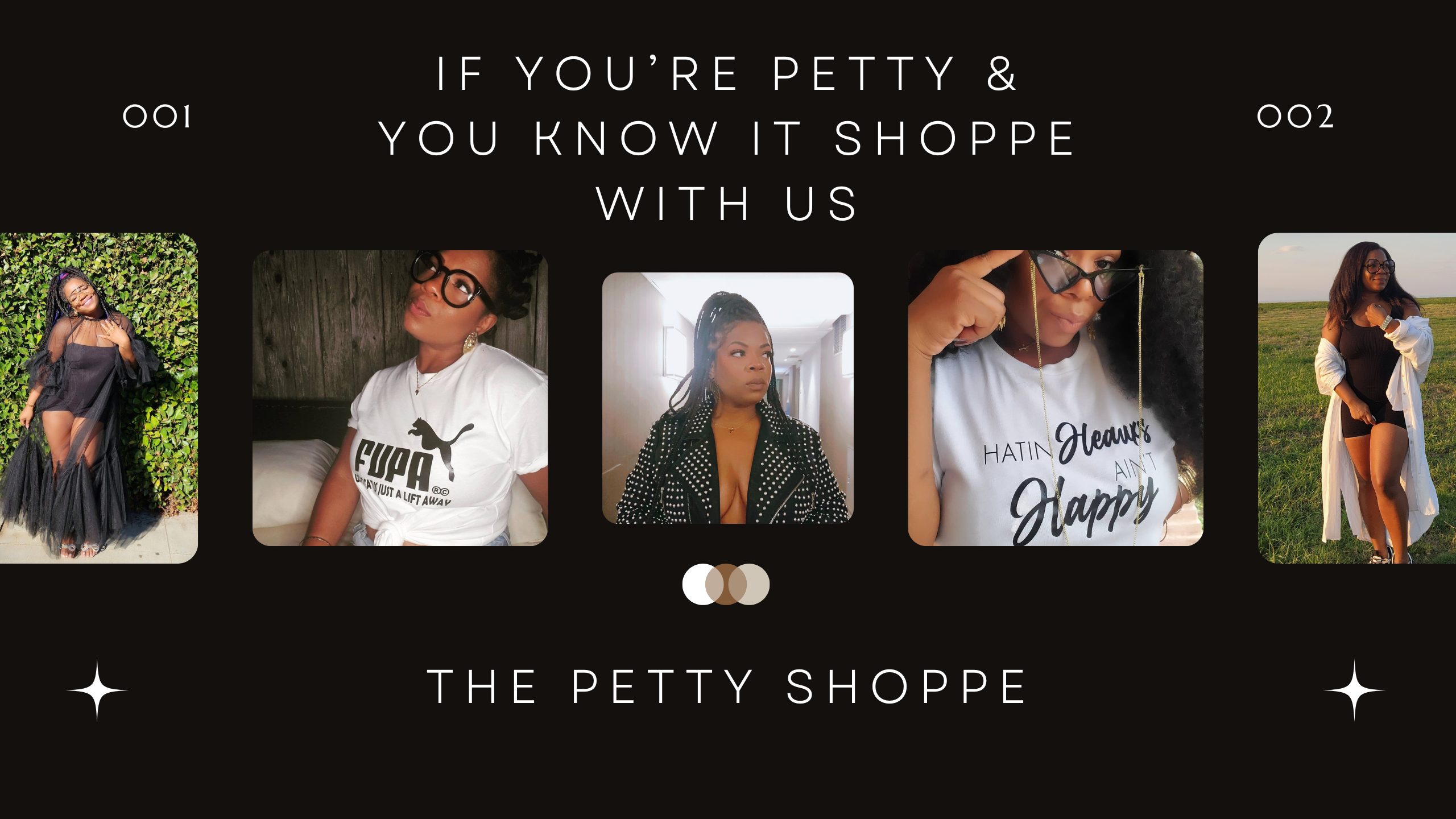 Welcome to The Petty Shoppe, where we celebrate the art of being unapologetically petty! Whether you're here for our exclusive events, the latest in petty apparel, or to keep up with the newest trends and media, we've got everything you need to embrace your petty side.